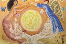 目に見えない心の世界や、天使たちからのメッセージを、色とかたちに託して描く絵のことです。